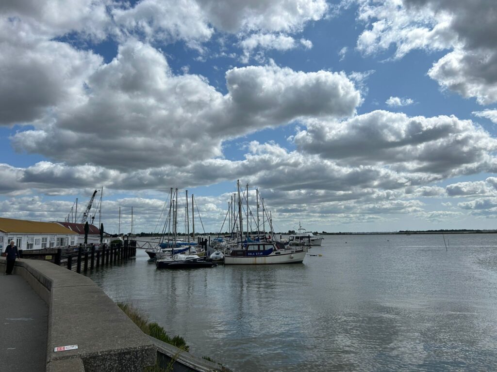 We met at the Daisy Meadow Car Park and set off along the Blackwater Estuary sea wall towards Osea Island The weather was cooler after the heatwave and with a welcome breeze and beautiful skies. There were lots of boats and yachts out for a sail and estuary birds making the most of low water.