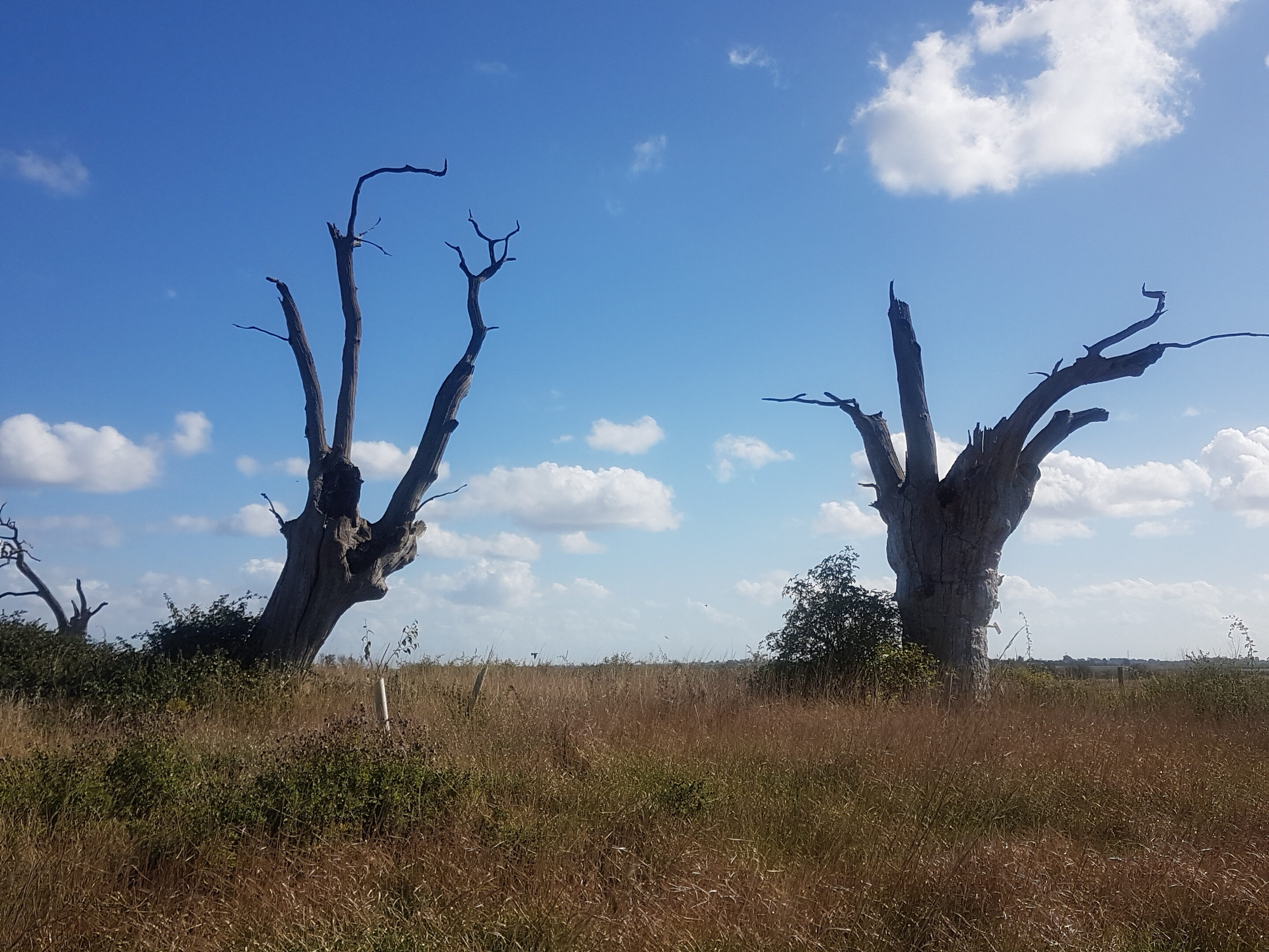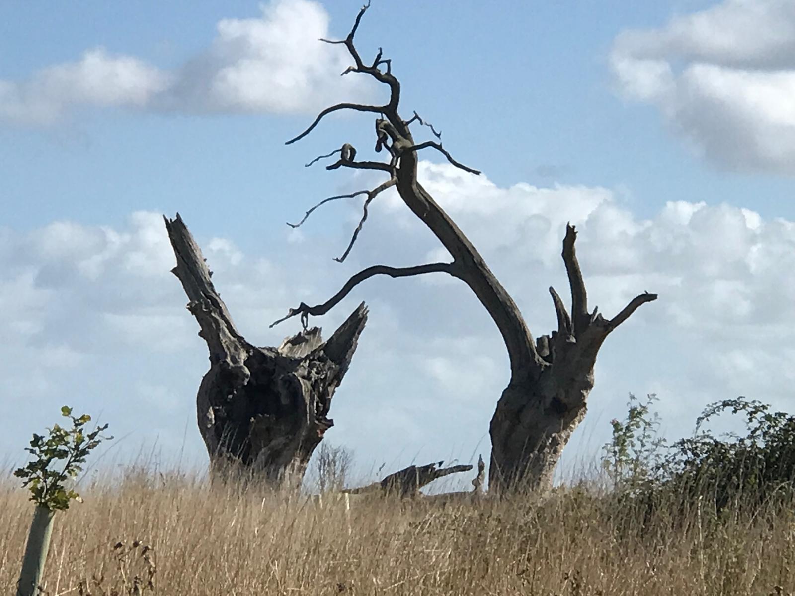 Afterwards we walked behind the churchyard to view the "Petrified Oaks" These oaks have stood for 800 to 900 years but probably due to salt water flooding from the Blackwater have died but to some extent preserved , a stark and eerie sight.