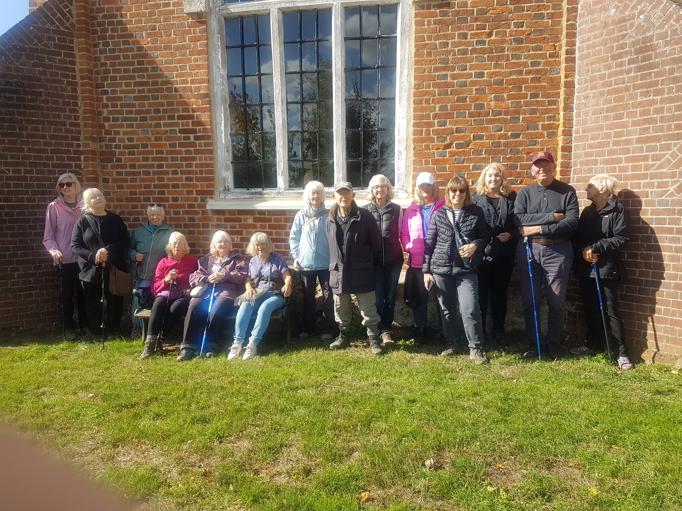 We met at the White Horse in the village and set off on a bright morning. Walking along good footpaths and farmland tracks we reached the 14th Century grade I listed St Mary's Church. Although redundant it has been carefully conserved and cared for by the Friends of Friendless Churches.
